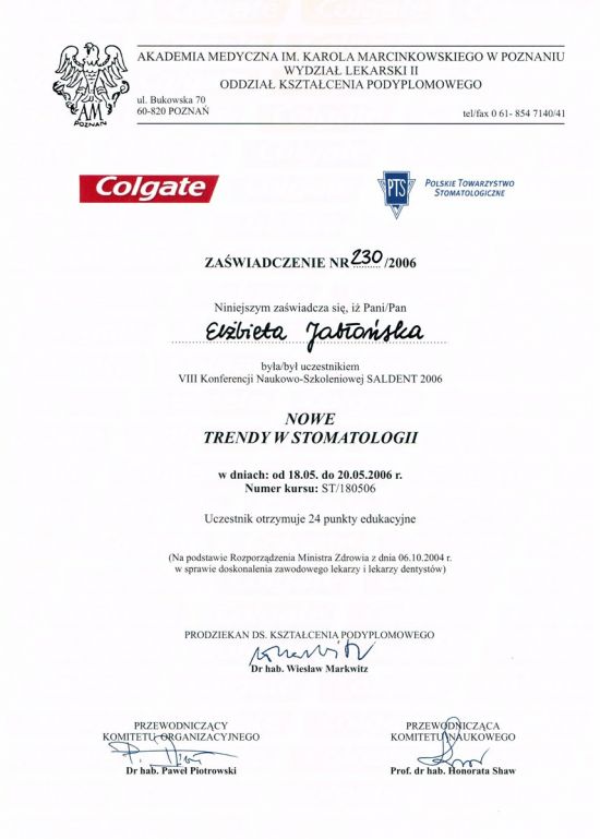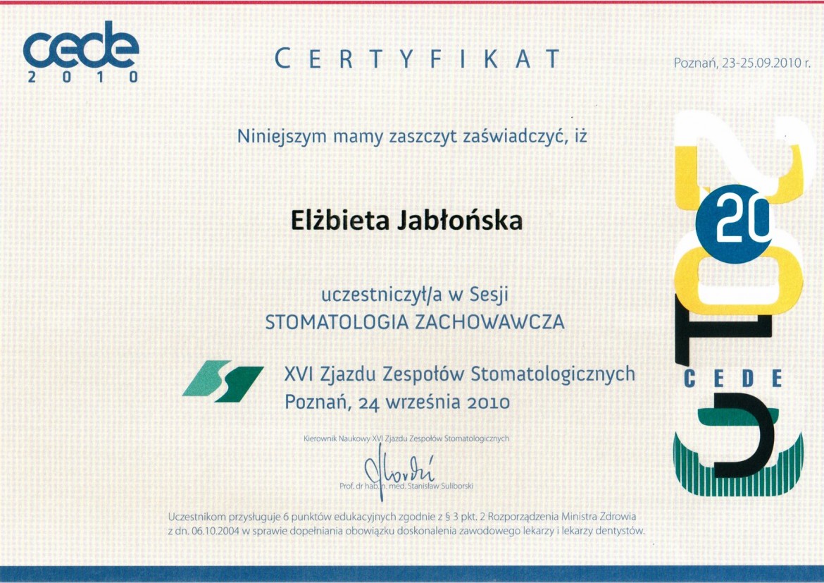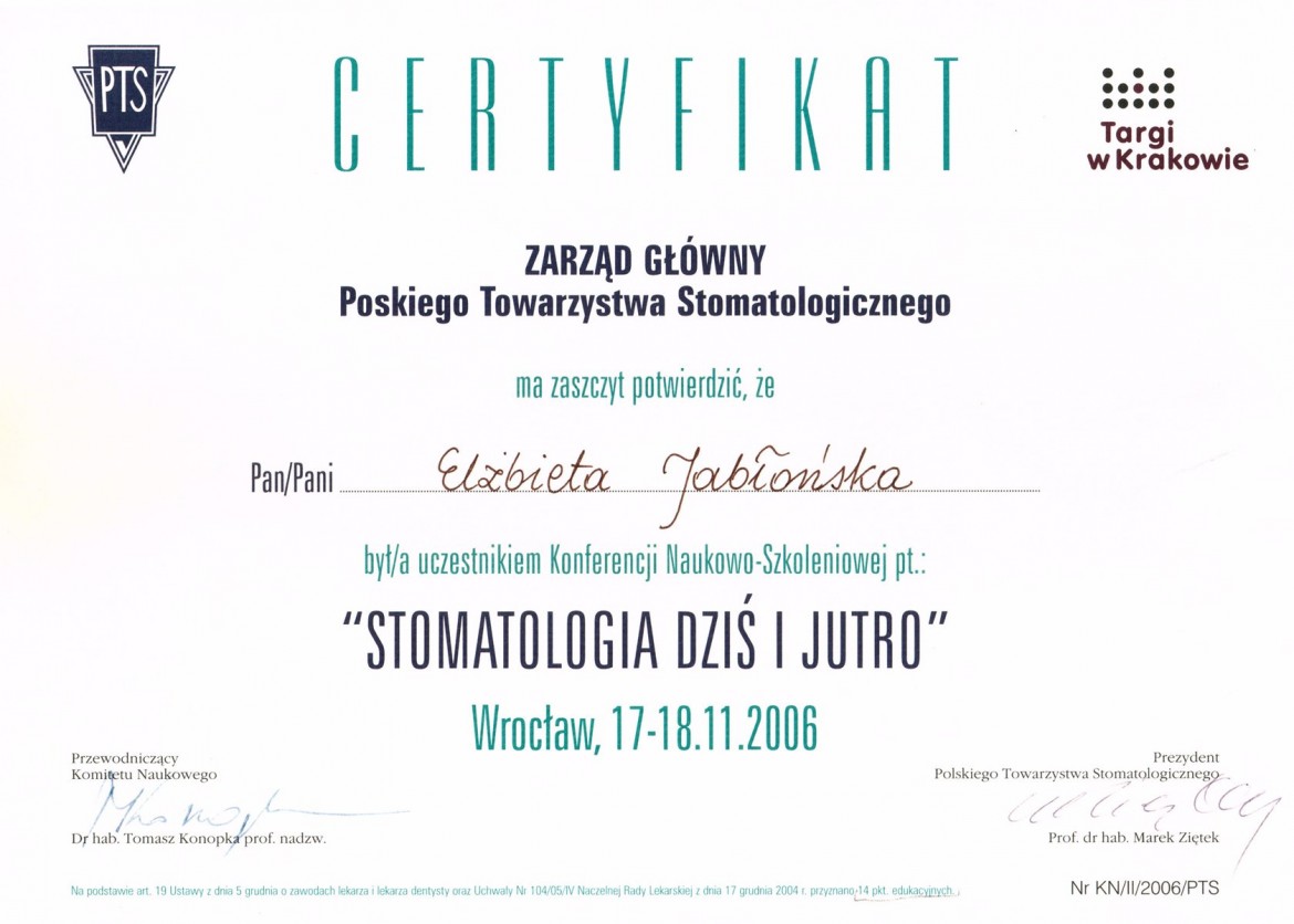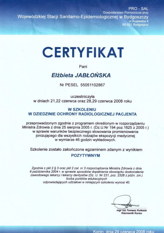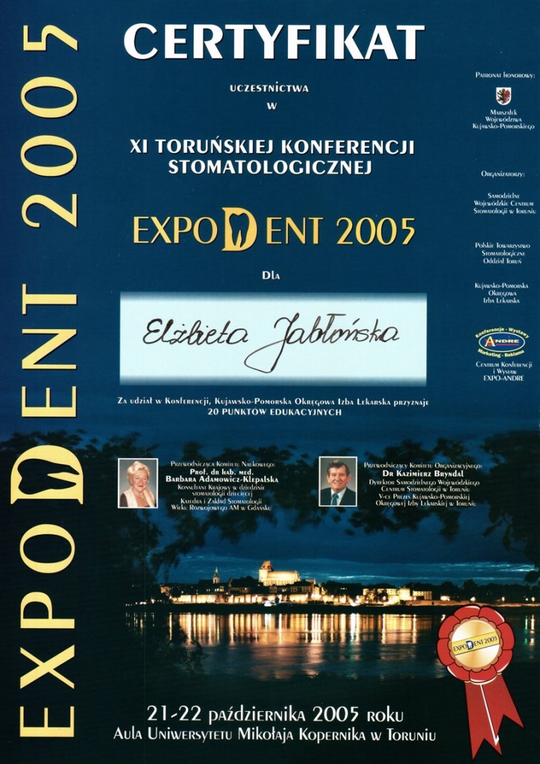 Elżbieta Jabłońska - współwlaściciel Przychodni OkoDent,ukończyła Akademię Medyczną w Krakowie.Posiada specjalizację ze stomatologii ogólnej i wieloletnie doświadczenie.